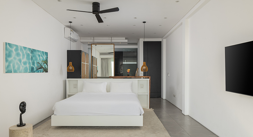 Each bedroom is a haven of serenity, framing breathtaking sea views that elevate the experience. This villa provides both privacy and shared luxury, ideal for families or groups. Ensuite bathrooms showcase bespoke details like single-slab suar wood counters. Unpack your belongings and settle in with ample wardrobe space and a safety deposit box to cater to practical needs.